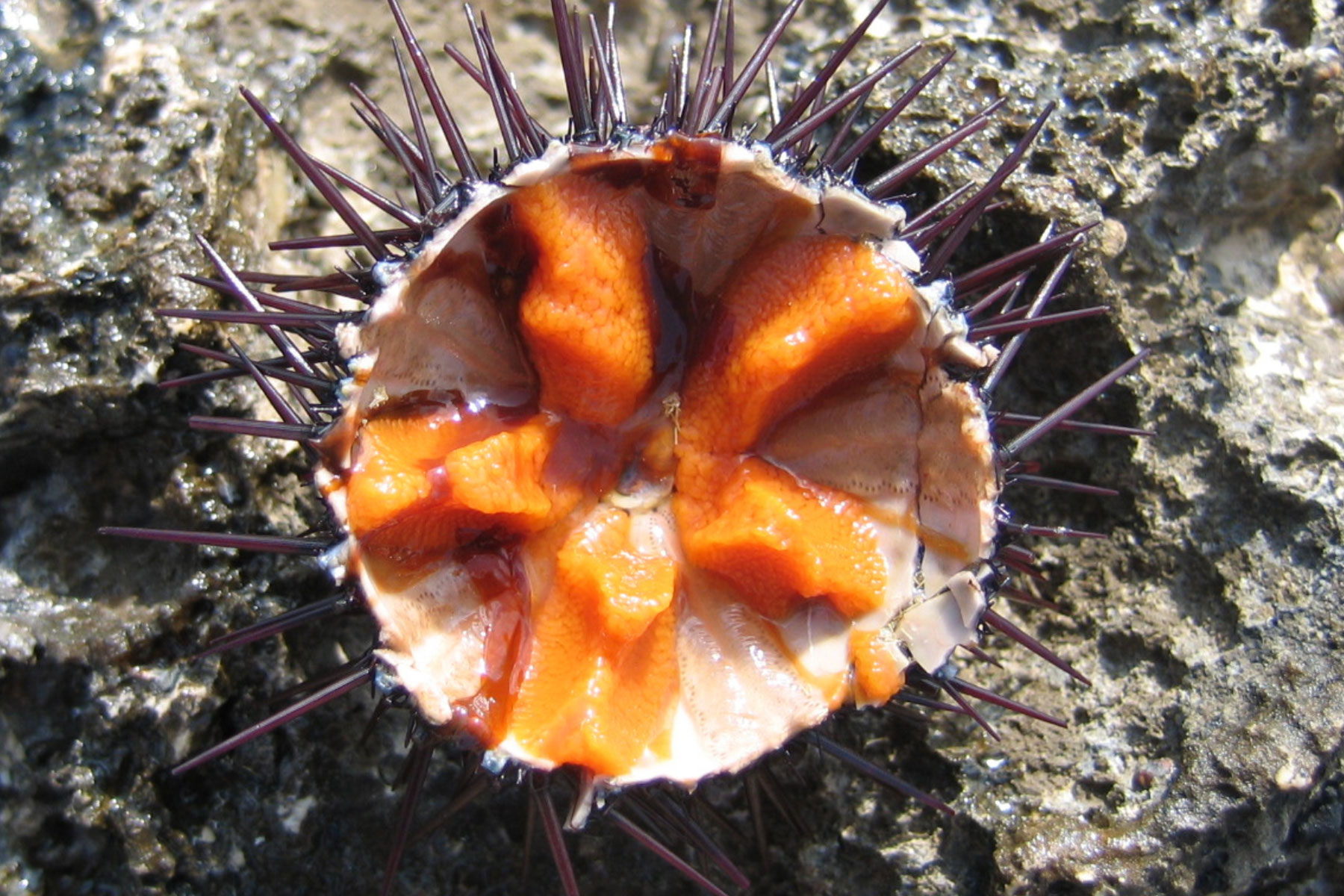 Crua, directament de la closca, acompanyada d’un pa de pagès torrat.